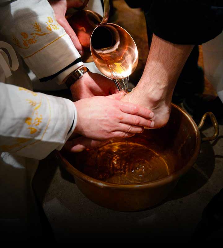 O venerando imitador do Cristo, identificado com o seu papel, patenteava toda a humildade do Divino Mestre quando, interrompendo a ceia, lavara os pés aos seus discípulos, pressentindo já na face pálida como as nuvens do inverno o beijo frio e viscoso da traição de Judas.