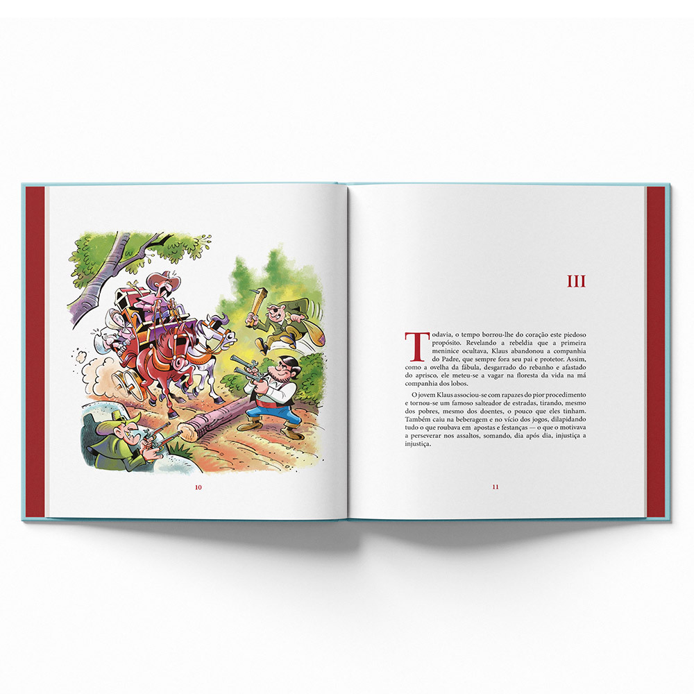O livro narra a vida do marceneiro Klaus, o senhorzinho que conheceu as histórias de São Nicolau na infância e firmou no coração o propósito de imitá-lo. — Mas não pensem que o caminho foi fácil! Pois nunca é fácil o caminho de quem busca a santidade.